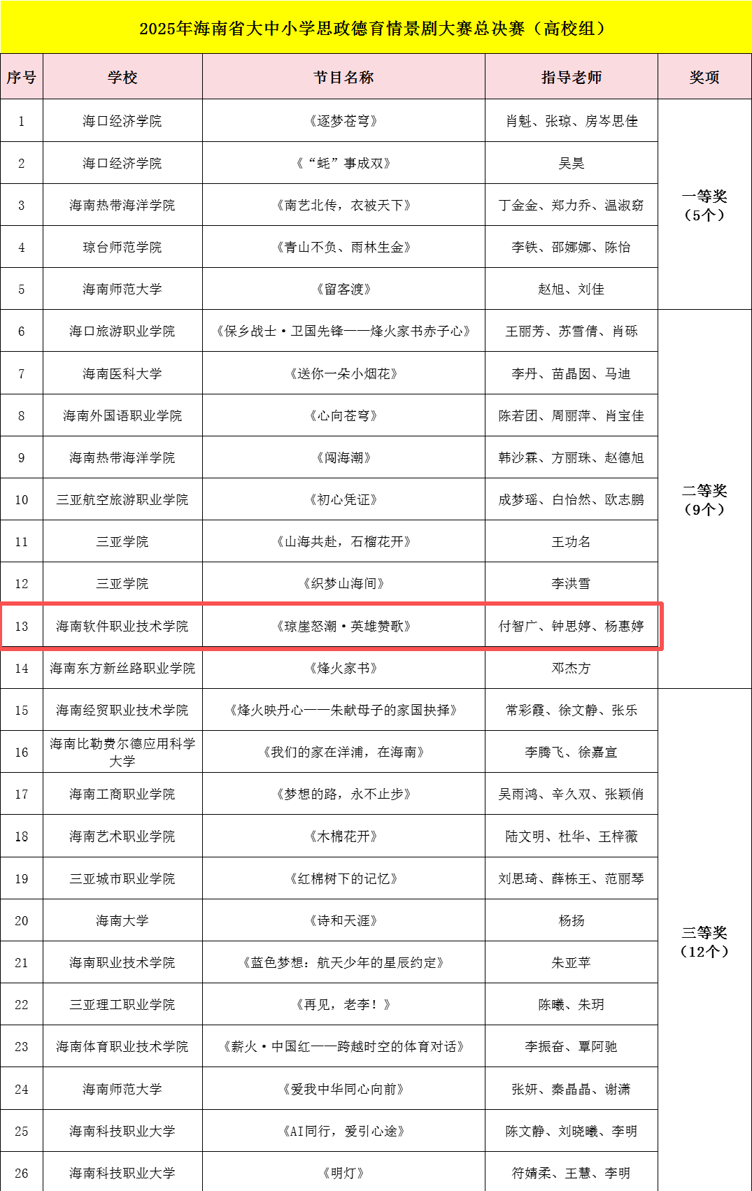 此次获奖,不仅是学校在思政教育与艺术创作融合领域取得的又一重要成果,更是对学校长期以来深耕红色文化育人、创新思政教育形式的充分肯定。未来,学校将以此次比赛为契机,持续深化思政教育改革创新,围绕琼崖革命历史、海南自贸港建设等核心主题,打造更多兼具思想深度、艺术温度与时代特色的思政文化精品,让红色文化成为涵养学生品格、激励学生成长的强大精神动力,为海南自贸港建设培养更多具有坚定理想信念和强烈社会责任感的优秀人才。