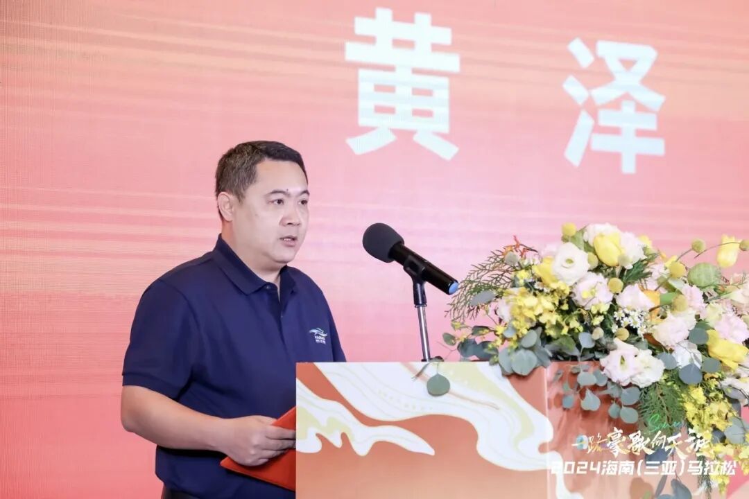 黄泽在2024海南(三亚)马拉松新闻发布会介绍赛事筹备情况