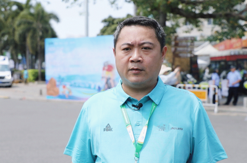 黄泽在第十六届环海南岛国际公路自行车三亚站比赛现场工作