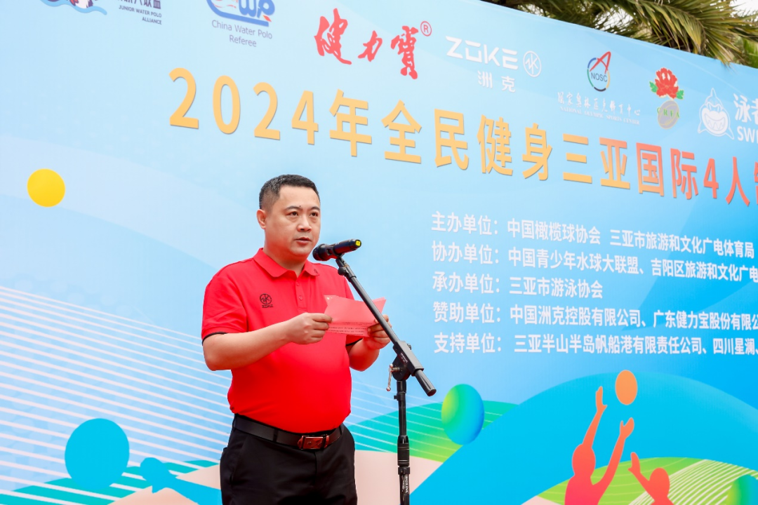 黄泽在全国青少年4人制水球锦标赛现场作发言