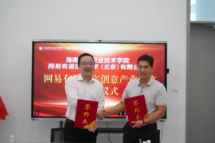 网易有道数字创意产业学院揭牌 作为我校深化职业教育改革的重要举措,陵水数字创意产业学院已于今年9月正式揭牌运行,1600名首批学生入驻海归小镇创新园区。学院秉持 “把课堂当岗位、把作业当产品、把校区当市场” 的实战化教学理念,打破校园与产业壁垒,将真实企业项目引入课堂。此次与网易有道的合作,将进一步整合产业链资源,完善 “人才培养 — 实践训练 — 就业创业” 一体化生态,为海南自贸港数字创意产业发展注入更强动力。 根据合作协议,我校将与网易有道围绕 “校企共建、产教融合、以产促教” 原则开展长期合作,重点推进四大核心任务:一是共建 “网易有道数字创意产业学院”,整合双方课程、师资与实训资源;二是打造产教融合实践中心与创新创业基地,推动真实企业项目进课堂;三是共建 “双师型” 教师培训基地,通过师资互派、企业导师授课提升教学实力;四是联合制定岗位能力画像与人才培养方案,拓宽学生实习就业通道。 网易有道数字创意产业学院签约仪式 在实践教学层面,我校将在产业学院内设立企业实训工坊、项目孵化室与众包实践平台,推行真实项目驱动式教学,邀请企业导师深度参与课程共建与考核。同时,通过师资互派、企业内训等方式强化 “双师型” 教师队伍建设,提升教师行业实践与课程开发能力。 在人才培养与就业衔接方面,我校将联合网易有道优化课程体系与评价机制,建立常态化实训就业对接通道。通过举办赛事、开设定向培养班等方式,拓宽学生实践创业路径,提升毕业生就业率与岗位胜任力。双方还将在科研成果转化、师生创新创业孵化等领域深化合作,构建产学研用协同创新机制。 韩小雨表示,此次合作是政行企校多方协同的重要成果,将成为职业教育与产业深度融合的典范。我校将以 “网易有道数字创意产业学院” 为载体,全力打造数字创意人才 “孵化池”、技术创新 “策源地” 与自贸港数字经济发展 “新引擎”,实现专业人才与行业企业的 “双向奔赴”,为海南数字经济高质量发展贡献海软力量。 会议现场 学校党政办公室、动画与数字创意学院等有关负责人陪同参加。